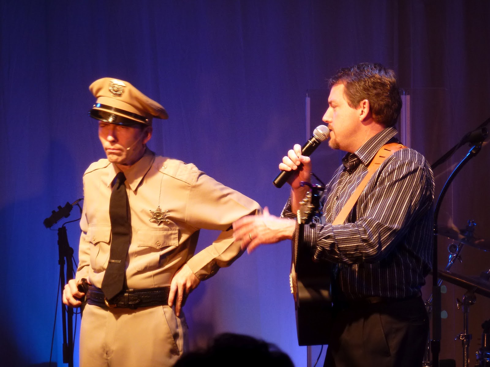One performer did an excellent imitation of Don Knotts even down to his police uniform and pistol without a bullet in it. He had the bullet in his shirt pocket like Barney Fife did on Mayberry RFD. He was supposed to be the security for the theater and was very funny and entertaining. In addition, he was a superb harmonica player and performed 3-4 great songs.